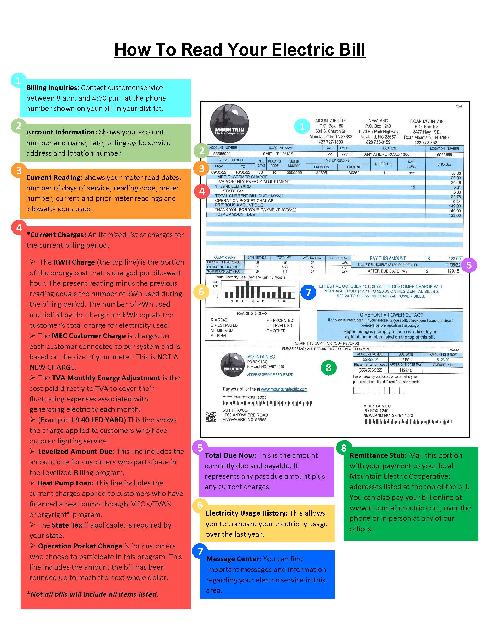 Please be advised: the customer must attempt to resolve their complaint with Mountain Electric Cooperative before filing a complaint. Note, TVA can not make billing adjustments/corrections to your account balance.